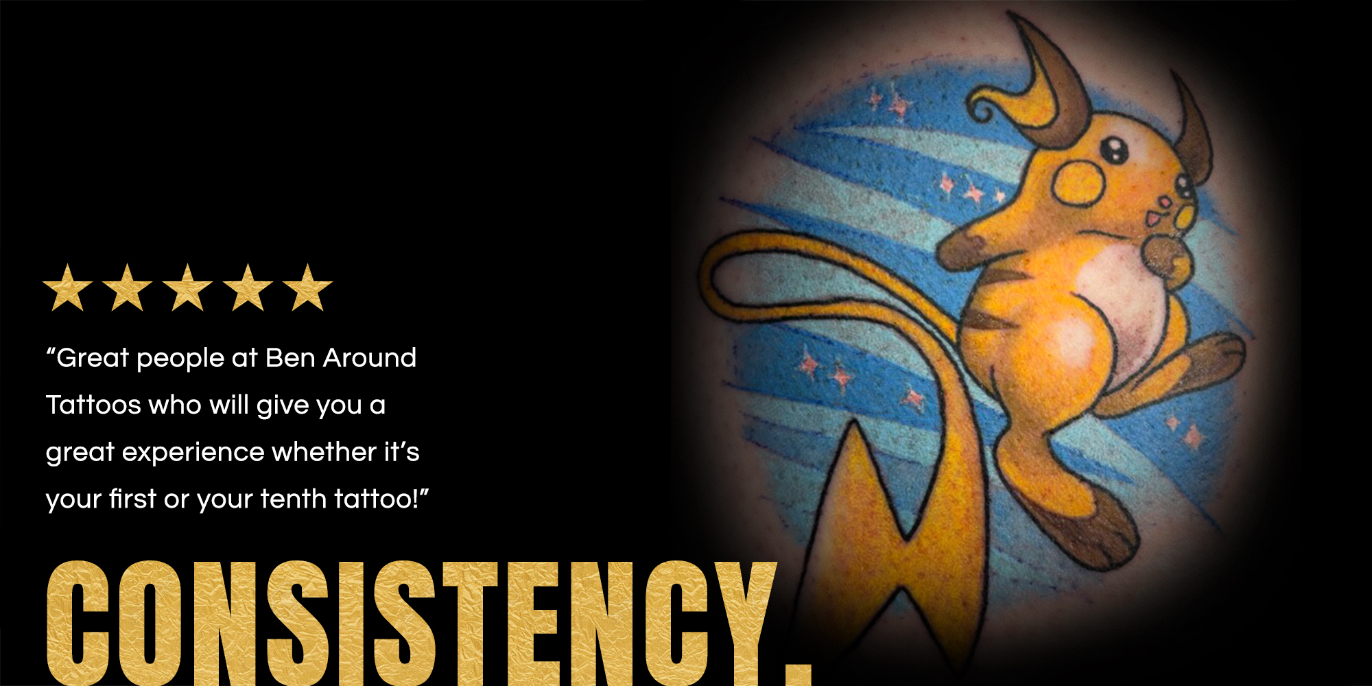 Ben Around Tattoos is a Virginia-based studio offering professional tattooing services (we do not pierce). We provide a high-end environment that balances classic aestheticism and popular culture. We take pride in the craft of tattooing and demonstrate it through each piece that is done in our studio!